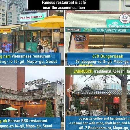 Este apartamento está situado no bairro Mapo-Gu e oferece acesso a Sinchon, que fica a 6 minutos de distância a pé. A Rua Comercial Myeongdong também se encontra a uma distância de 4.5 km do apartamento.